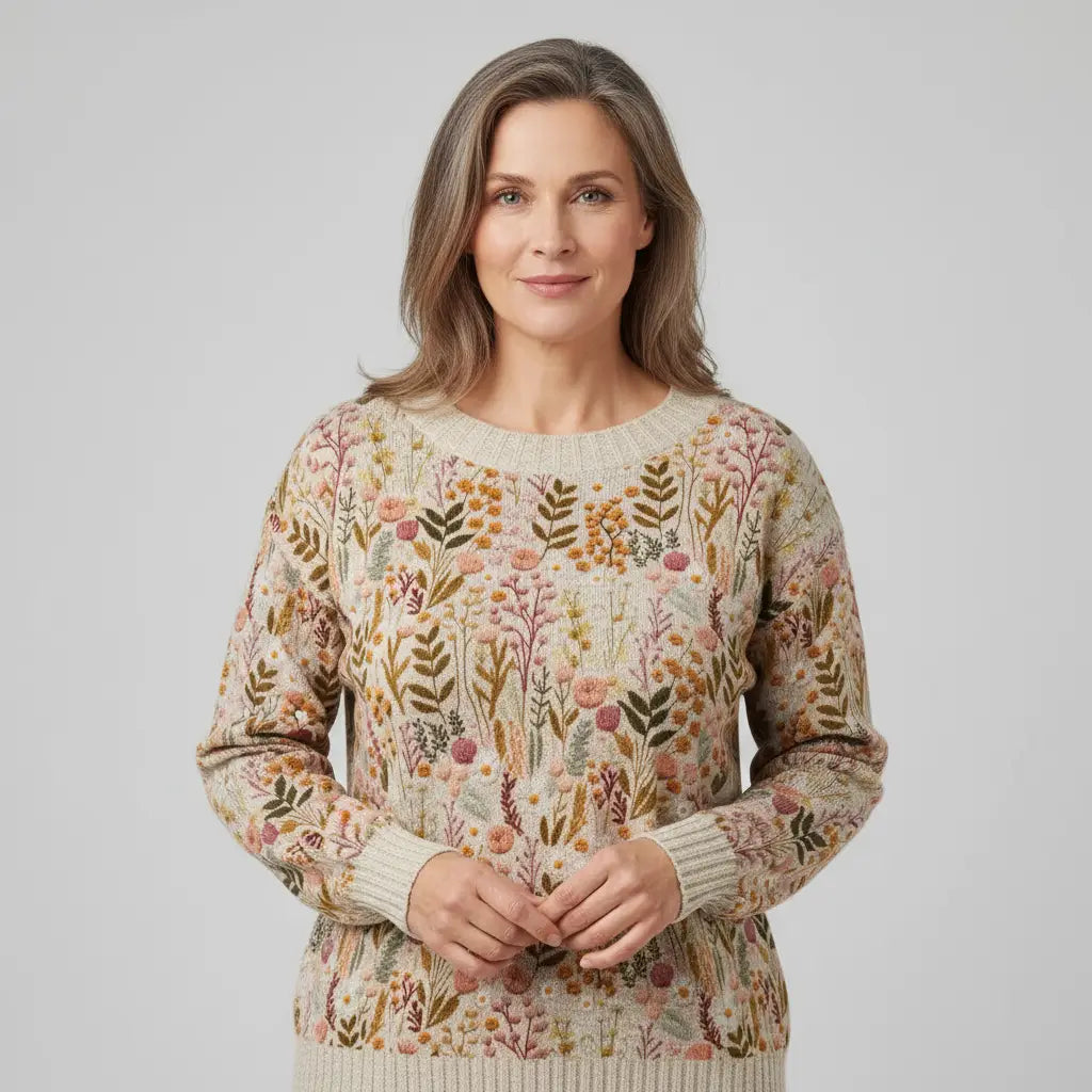 Jena – The Soft Sweater with Floral Embroidery will enchant you with its radiant sophistication. This sophisticated women's sweater is made from high-quality materials, perfectly blending comfort and durability. The delicate floral embroidery adds a playful yet feminine touch to the sweater, while its luxurious comfort makes it an indispensable piece in your wardrobe. Wear the unique style of the Jena™ sweater with confidence—it suits every occasion.